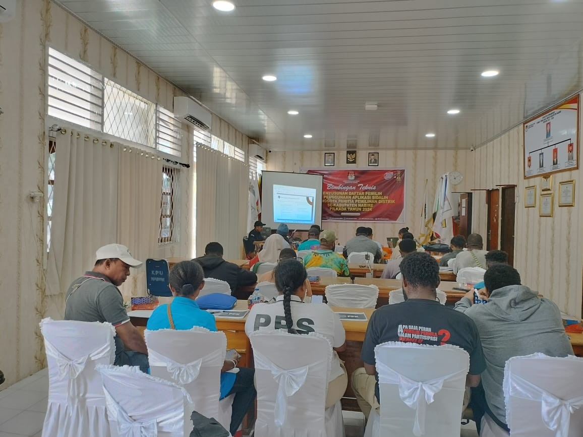 Komisi Pemilihan Umum Kabupaten Nabire menggelar Bimbingan Teknis Penyusunan Daftar Pemilih dan Penggunaan Aplikasi Sidalih kepada Anggota Panitia Pemilihan Distrik Se-Kabupaten Nabire di Kantor KPU Kabupaten Nabire, Rabu 31 Juli 2024.